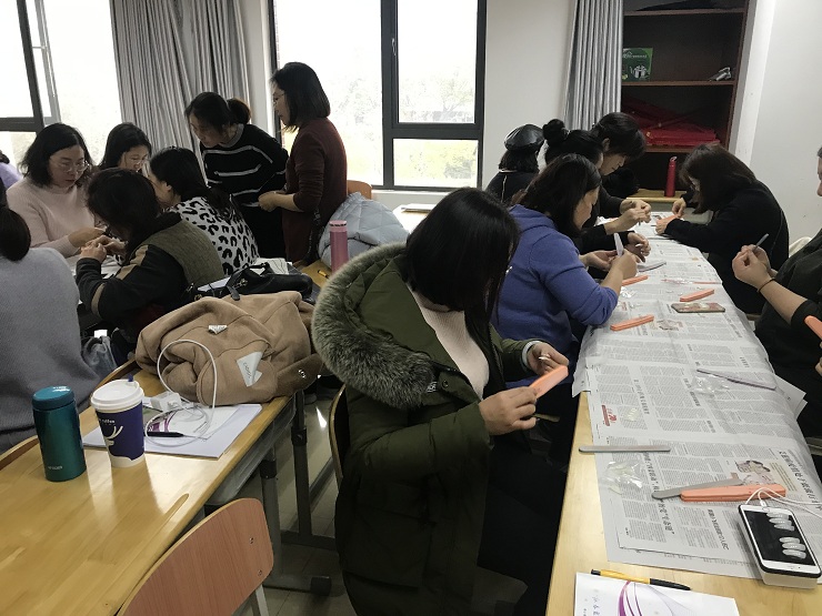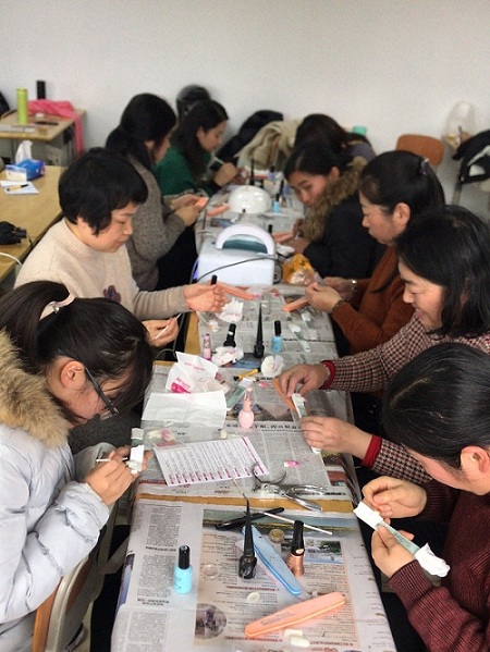 朱老师从指甲基础护理,甲油系列、光疗系列、水晶系列、彩绘系列几个方面为学员进行了详细地讲解,并介绍了美甲需要用到的工具与机器。接着,朱老师亲自示范传授技艺,教大家如何上甲油,边操作边讲解,并让大家互相练习,确保每一名学员都能及时掌握。大家认真学习,积极交流学习心得,授课现场气氛轻松而活跃。此次培训得到了居民们的喜爱,大家纷纷表示:“这次培训既漂亮了自己,又学了一门手艺,多了一条就业之路。”