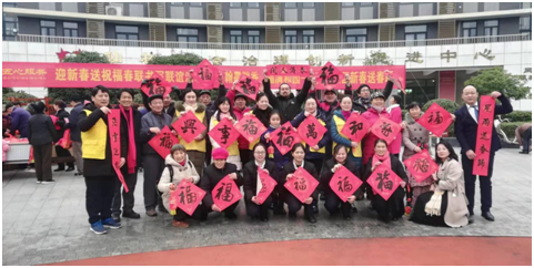 1月17日上午,在新春佳节即将来临之际,仙林街道社区教育中心携手和园社区、小天才青少年发展服务中心在南大和园墨香轩隆重举办“翰墨飘香 福满和园”为主题的迎新春写春联送福活动。