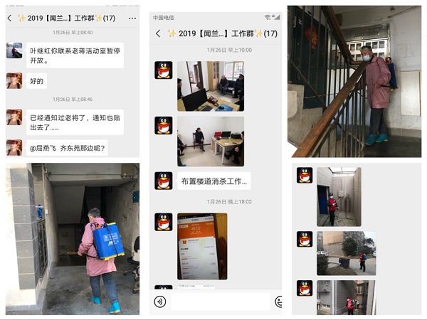 1月26日,关闭社区文化活动室,安排党员、志愿者布置楼道消毒杀菌工作。