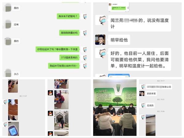 1月29日,社区工作人员回到岗位提前上班,对于14天内“武汉来宁”人员保持微信联络,要求在家隔离,每日报告体温,社区提供日常必需品购买服务,购买完放至家门口,避免接触。