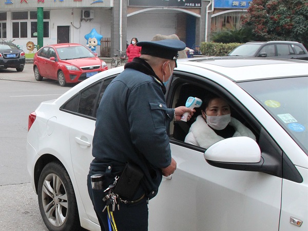 夏主任考虑到进入人员测量体温一般不会排斥,矛盾较小,两位保安在此门岗工作过,对小区内的居民相对比较熟悉,和两位非本地人的社区工作人员安排在左道,这样在外地人员回到小区时,可以方便进行信息核查、登记,沟通起来也比较顺畅。中间的两位保安还是“新人”,在行人车辆内人员较多的时候,中间的保安就开始两边帮忙,大大减少了测温时间,可以避免漏测的情况发生。而右边的保安和社区的一位工作人员都是地地道道的“本地人”。目前所有外来车辆都禁止入内,这样难免有些本地非本小区车主会有意见,而这时候“本地人”的保安和工作人员就发挥作用了,操着本地口音耐心的告知和劝解让车主理解不少,有时候直接是“熟人”,多少“给点面子”也就不那么计较了。至于党员志愿者,专职负责三角地锥。在车辆经过车牌识别和车内人员体温测量后,党员志愿者将三角地锥移除,让车辆通过。这一个小小的三角地锥有效防止了车内人员还没有测量体温就开进小区的情况发生。夏主任说:“既然让我们来守门,我们就要守好门。这门岗看起来简单,实质上是至关重要的,我们守门就是要守住任何一个风险。”