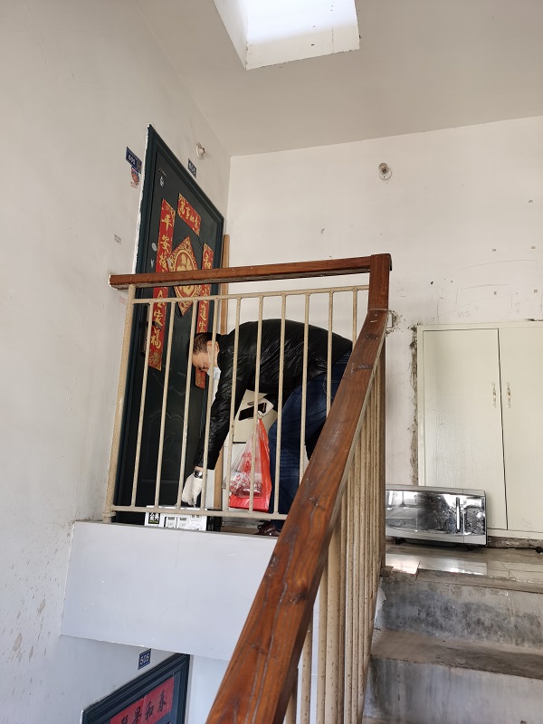 社区采取责任分包制,每位工作人员负责联系各自网格内的归宁人员,采取微信,电话,视频等多种方式确保人员居家隔离。大家不仅每天早晚两次监测居家人员的体温,还关注他们的需求,确保在家隔离,在了解到家里没有足够的蔬菜时,工作人员主动采买上门。“菜和体温计送过去了”,初二一大早,社区田勇同志就已经将居家隔离人员需要的生活物资送到对方家门口了。居家隔离人员的观察期是14天,相关人员除了生活必须品的需要之外,还会产生相应的生活垃圾。社区工作人员轮番上阵,多次上门为大家送去温度计、新鲜蔬菜、生活用品,还安排了专门的人员处理大家的生活垃圾。