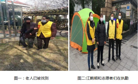 物业当即派出了员工在小区里外寻找,从小区外顺延至亚东城片区、312国道寻找了一个小时也没有收获,正当众人准备报警时,在小区门岗执勤的万家欢志愿者江鹤顺和队员闻讯赶来。“外面疫情这么严重,一个都不能少!”江鹤顺对志愿者们说到,由于小区里有一个小池塘,大家十分担心老人的安危,他们在河塘周边呼喊,查看,接着又去了各个楼栋,里里外外仔细搜寻,最后他们甚至去了小区的垃圾房,把各种角落翻了个底朝天仍无所获。这可急坏了江鹤顺,多浪费一分钟时间,老人就多一分风险,他们加快寻找的脚步,终于,在一户居民家院子里,志愿者发现了一个身影,偏偏院门上了锁,喊了好几声,没人在家,志愿者们费了好一番劲,从外面把锁拧开了,进去发现就是失踪的老人。