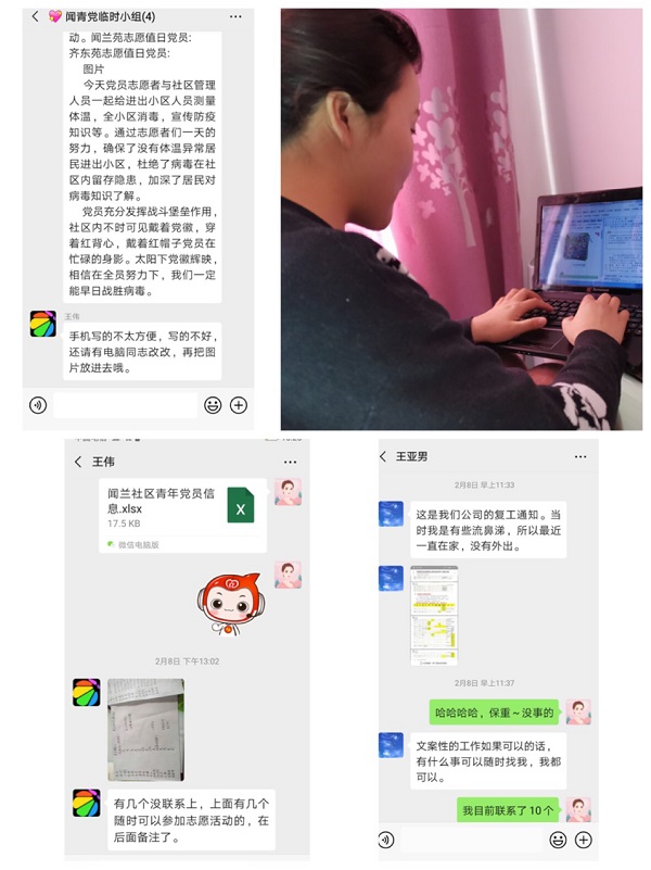 我们向社区工作人员表达愿望之后,被建议在家服务做“幕后工作”。终于可以出一份力,我们非常开心!由于志愿队的管理需要有人负责资料收集,社区建议我们报名担任副组长,管理志愿者群、整理文稿资料,我们欣然答应。