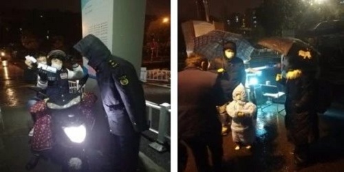 “刚刚小朋友一声'叔叔辛苦,谢谢叔叔',已经暖到心底里了。看看这些回家的老百姓们,这种时刻更不能放松,这点苦又算什么呢!”冷夜风雪中,在门岗执勤的仙林新村社区城管队员钱金是这么说的。