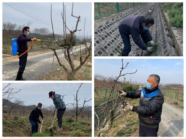王国保负责村里80亩的桃园和梨园的管养。“今年果园的农资都是提前在网上订好送来的,因为疫情前期不少农资都断货了,不过村民工作组提前帮助我订了农药、喷洒机等,保证了我们正常干活。”