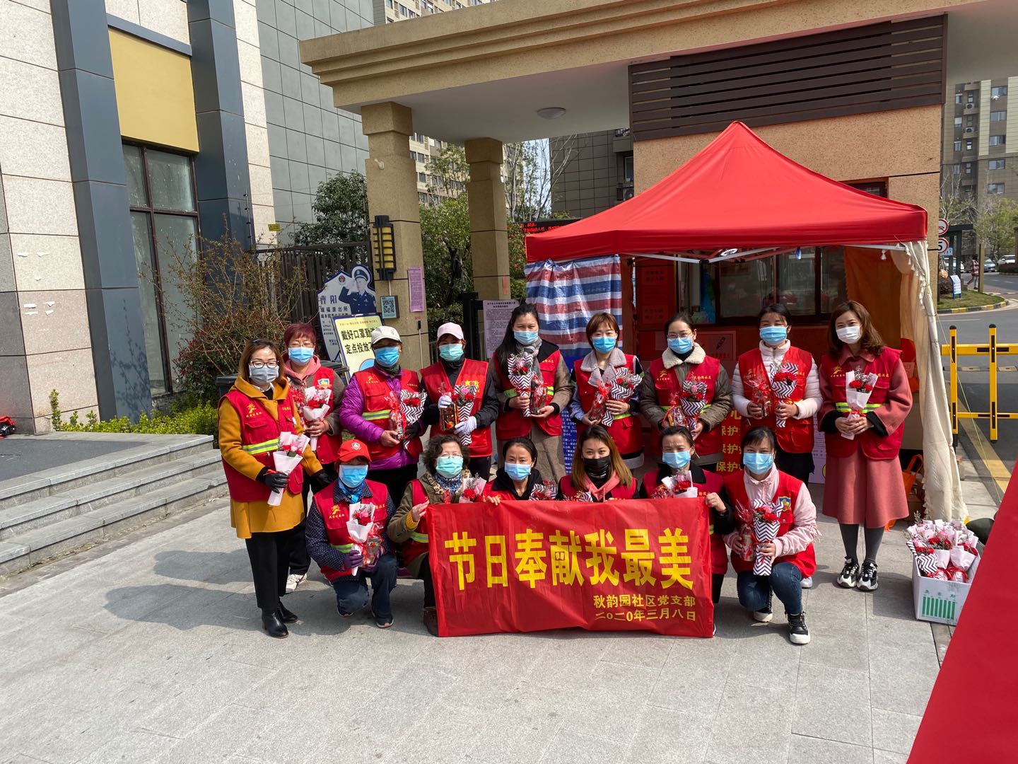 3月8日上午11时,迈皋桥街道秋韵园社区的巾帼英雄们收到了来自社区居民的祝福、鲜花及礼盒。手拿鲜花和礼盒的女性志愿者们都笑开了花,纷纷表示疫情能阻隔大家的距离,却阻隔不了大家的心。