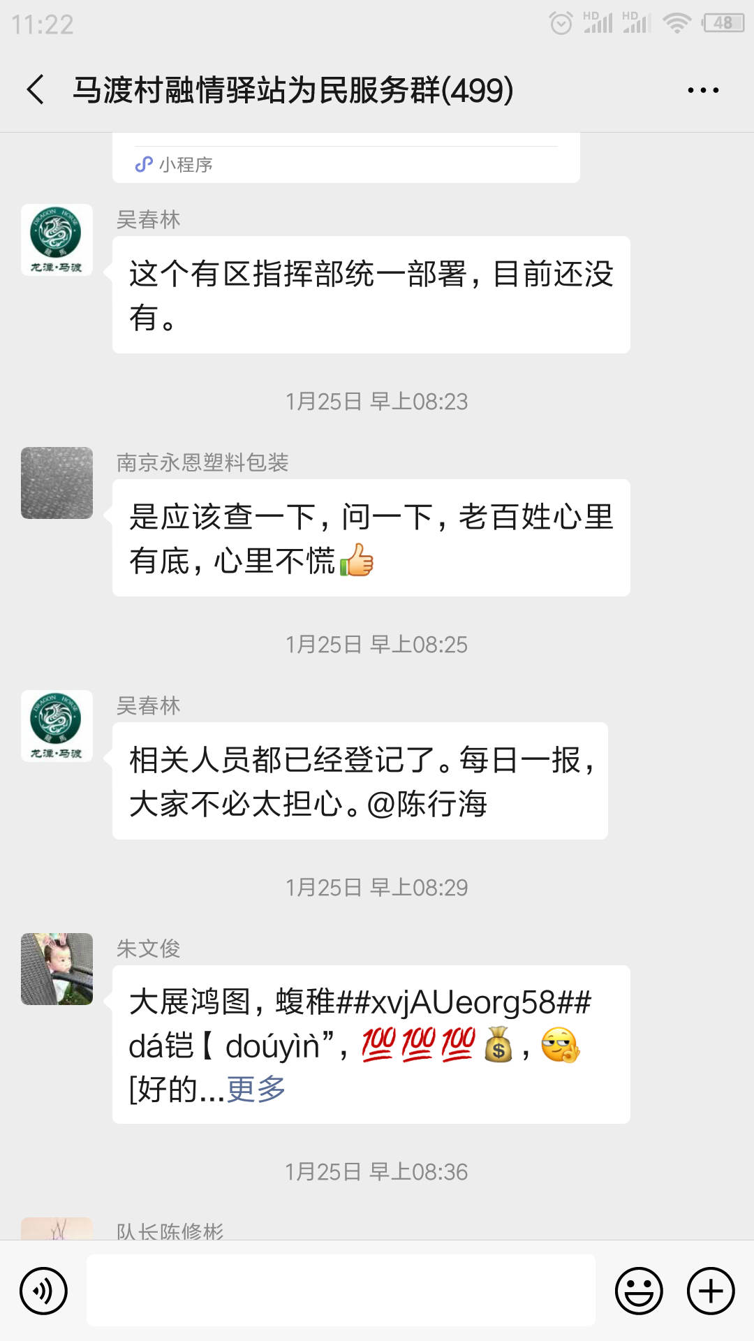 因为鼓励村民少出门、不串门,掌上云社区便成了村民间沟通的桥梁,连接村民与村委会的纽带。村民在微信群中发布的疫情舆论信息,村委会及时进行疫情防控正面舆论引导,稳定民心,做到不信谣、不传谣、不造谣,村民也在微信群中积极建言献策,积极发挥群的正能量作用。人人参与、群防群控,众志成城坚决打赢这场疫情防控阻击战!