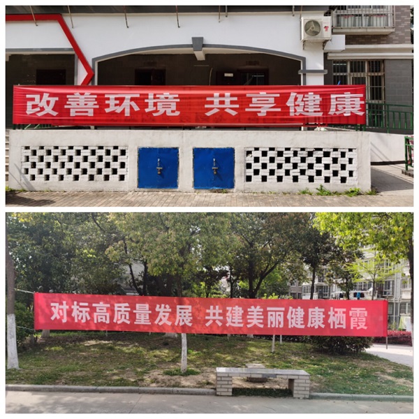 强化宣传——为了营造良好的整治氛围,社区工作人员大力宣传文明卫生常识,在小区广场悬挂宣传横幅,引导小区居民积极投入到“爱卫月”活动中,自觉清理自家楼栋卫生死角,打造美丽小区生活环境。