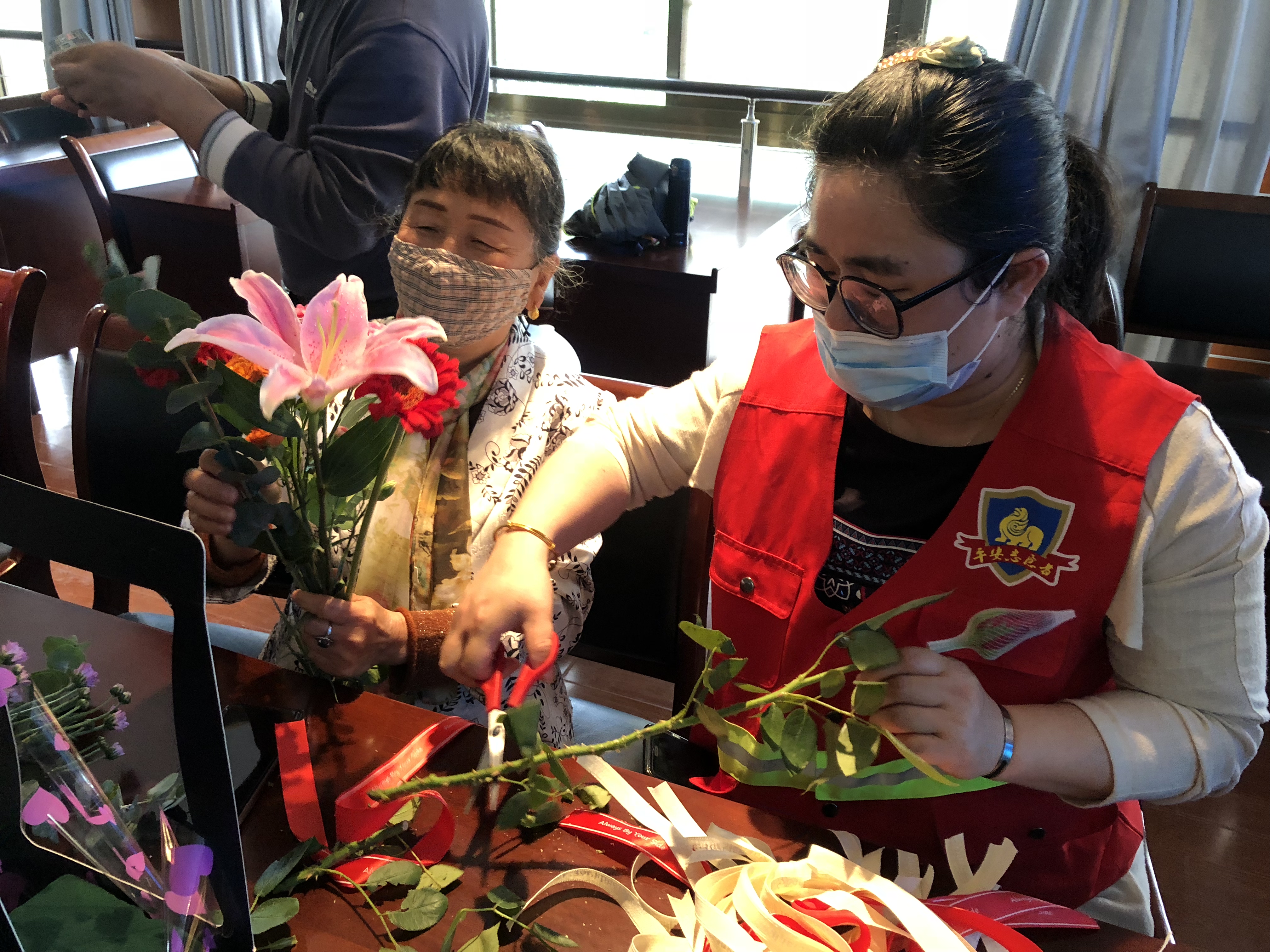 5月9日,在母亲节来临之际,石化村社区居民学校为辖区空巢老人、独居老人和残疾人在社区活动室开展了一场以“献给妈妈的爱”为主题的插花培训。