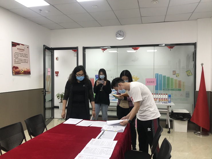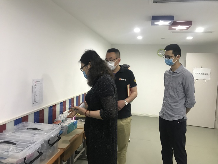 现场,验收人员认真查看了各培训机构“两案八制”、返校人员健康信息等台账资料,并对线下复课准备工作进行了询问。除此之外,还实地检查了口罩、一次性检查手套、护目镜、紫外线消毒灯、疫情防控宣传提示语等防疫物资的准备情况。