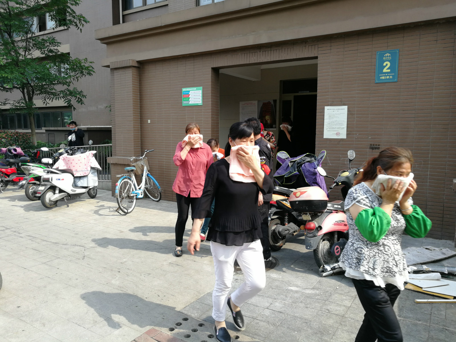 下午15:00,消防演练正式开始,馨合家园小区监控室发现小区四栋有火情,立即呼叫物业各部门,随后疏散组、后勤组、治安组和灭火组人员在6分钟内赶到现场,疏散组和治安组人员相互配合组织4栋居民在5分钟内有序撤离到安全区域,灭火组人员赶赴起火点进行灭火。