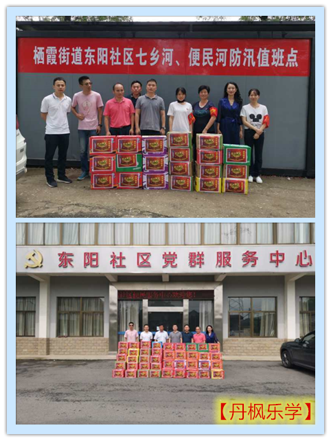 24日上午,南京江桥混凝土有限公司总裁孙宗敏来东阳社区慰问防汛一线工作人员,并带来了50箱方便面和50箱功能型饮料,分别送到东阳社区5个防汛值班点。了解到今年的汛情后,南京江桥混凝土有限公司及时筹备物资赶往一线慰问,用实际行动向坚守在防汛一线的工作人员表示关心和敬意。江桥混凝有限公司总裁孙宗敏说:“正是防汛工作人员的辛苦付出,我们才能安心生产,才能安然入睡。向在防汛一线的工作人员致敬!”