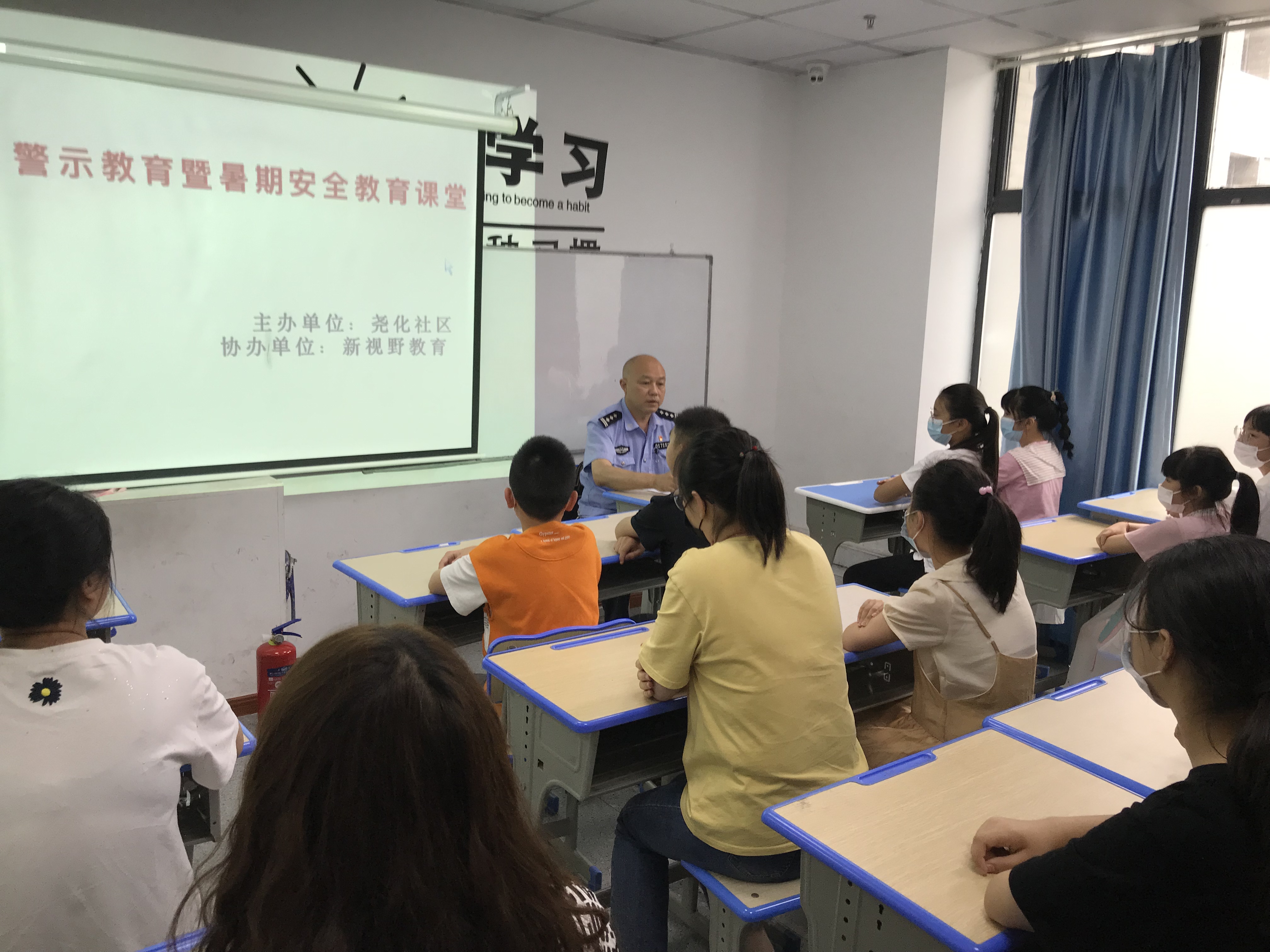暑假已经开始,为了让辖区孩子们过一个安全、愉快的假期,尧化社区党委结合社区集成改革工作“爱在尧化”,联合辖区新视野培训机构,特别邀请尧化派出所社区民警李警官为学生们开展了一场警示安全暨暑期安全教育课堂。