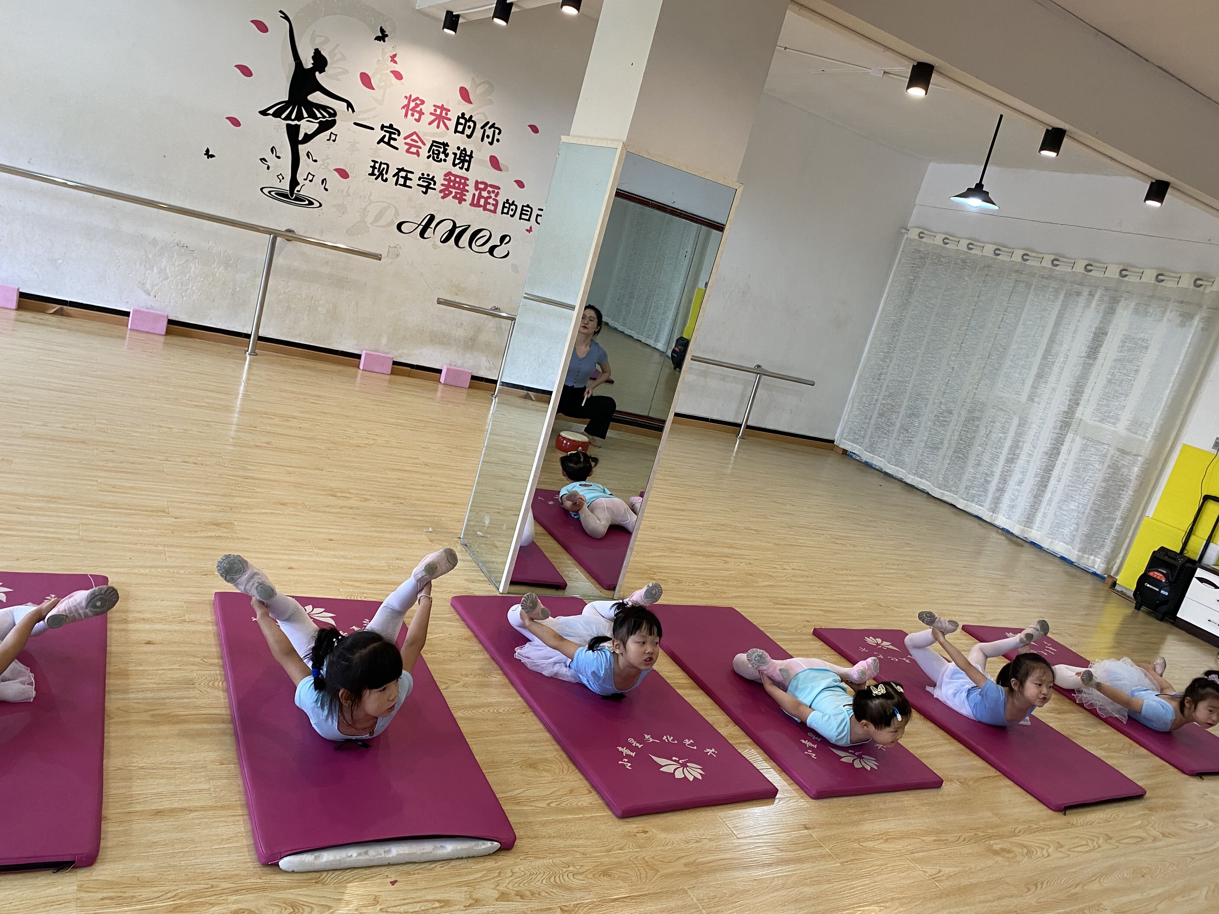 活动中,邓老师先和学生认识交流,亲切的语言很快让这些小家伙们注意力集中起来。随后,老师现场为学生们表演了一段舞蹈,同学们对老师优美的舞姿和有难度的动作产生了兴趣。邓老师告诉小朋友,要想和老师一样棒就要好好学基本功,从基础动作开始。在学习环节,同学们都很认真,将基础动作力争做到标准。陪同的家长们纷纷举起手中相机,留下孩子们最开心、最天真的笑容。