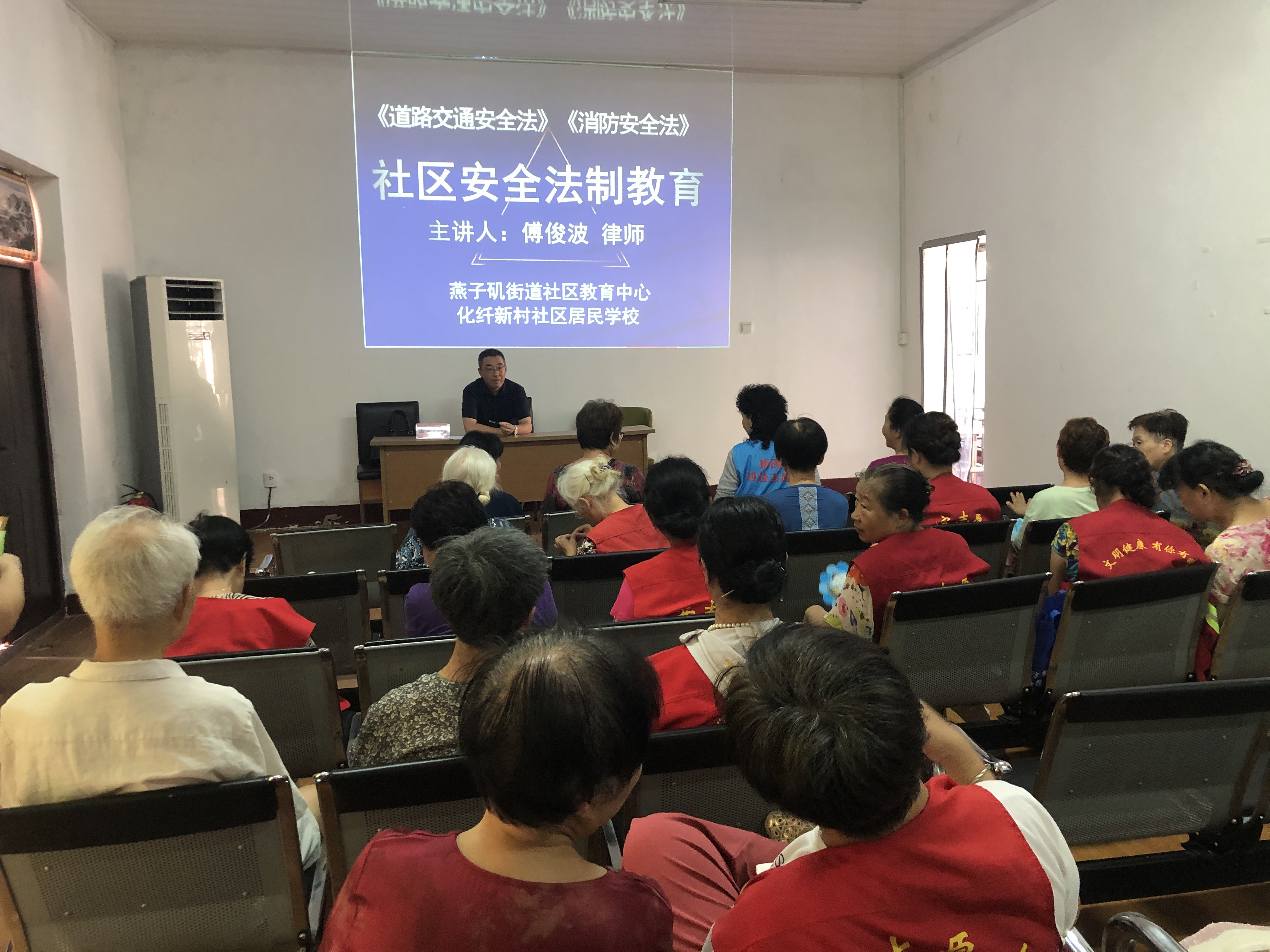 为进一步加强社区普法宣传教育,提高居民的法律意识,8月17日上午,燕子矶街道社区教育中心联合化纤新村社区居民学校邀请江苏李云律师事务所的傅俊波律师,为辖区居民开展安全法制教育讲座,共促社区平安文明。