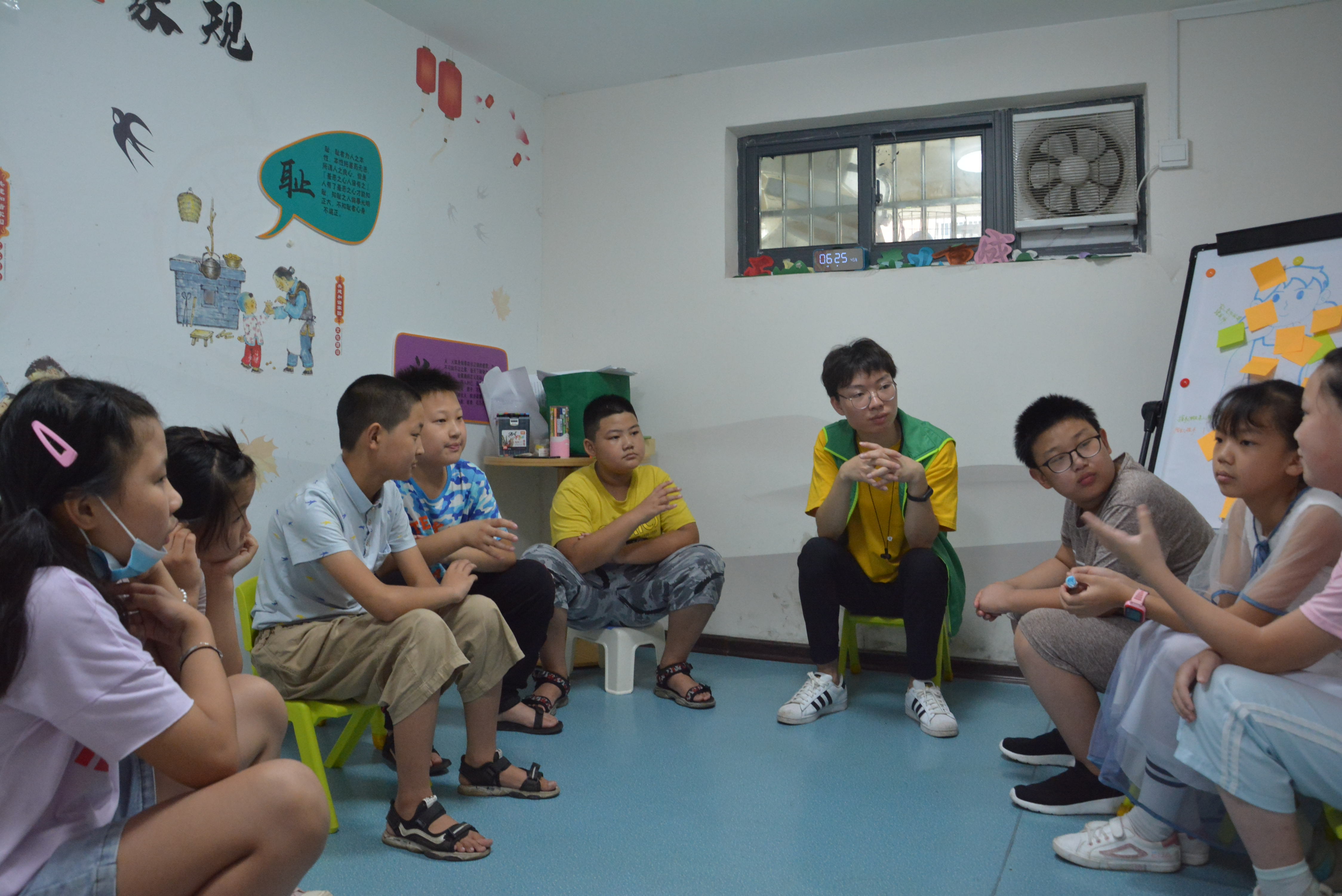 社会工作者带着孩子们在幕府山庄童缘一起讨论身体边界,让孩子们识别友好触碰和恶意触碰的区别,以及发生恶意触碰时,如何求助,保护自己。