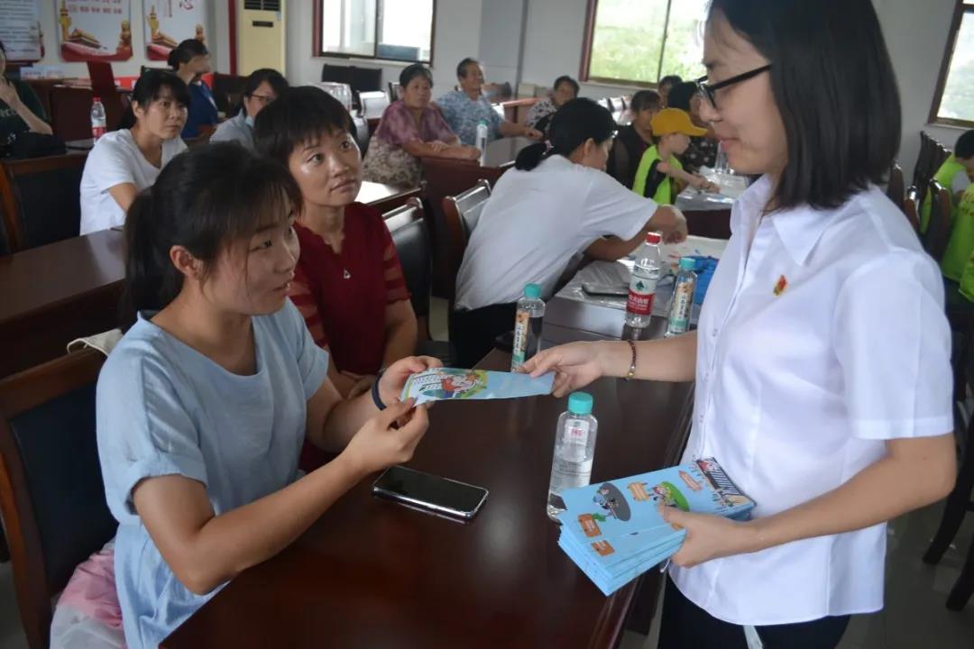 马渡村居民学校联合村便民服务中心工作人员向大家发放“倡导文明新风、共建美好家园”宣传手册,一同学习社会主义核心价值观、八礼四仪、村规民约等。