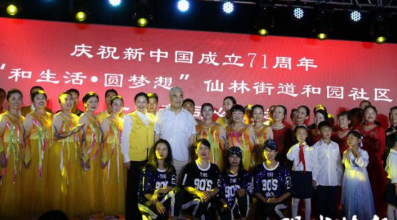 在南京仙林街道和园社区,“中秋月明”暨庆祝新中国成立71周年文艺联欢晚会举行。活动现场,1300多人齐聚一堂,提前庆祝国庆和团圆。