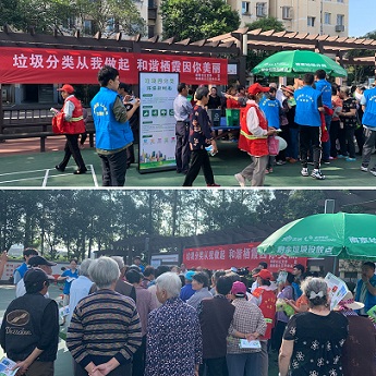 首先,工作人员讲解了垃圾分类开始的时间,南京市垃圾分类管理条例内容,垃圾分类的必要性和好处。然后志愿者分发了垃圾分类宣传单,工作人员和居民一起学习了垃圾的种类,如何进行垃圾分类。讲解学习之后,工作人员又现场准备了各类垃圾的样本,和居民互动。大爷大妈们踊跃参与,工作人员对垃圾投放正确的居民进行奖励,现场气氛十分活跃。最后,在广场大屏上又播放了垃圾分类的宣传片,加深了大家对于垃圾分类的意识。