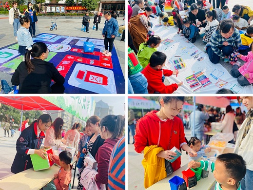 5、环保知识问答:志愿者老师引导并鼓励大家回答环保知识。环保小游戏分为了,环保“飞行棋”和垃圾分类两种,环保飞行棋引来了社区小小朋友的喜爱,一旁的志愿者老师给小朋友讲解游戏规则,小朋友们玩得不亦乐乎也了解了环保知识。