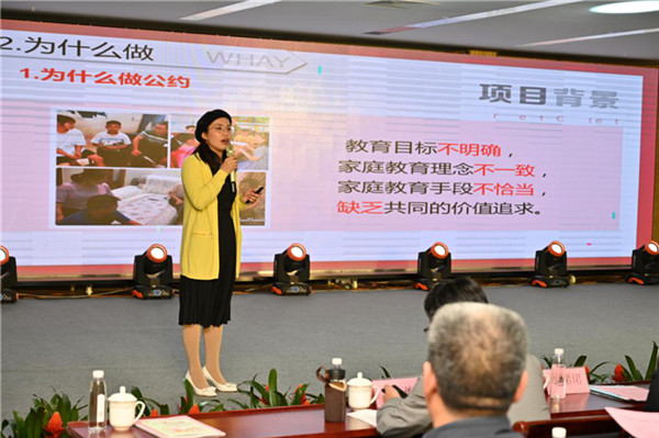 活动开始后,主持人先一一介绍了与会嘉宾,播放了家庭教育宣传片。宣传片重点突出了温馨和谐的家庭氛围、父母的一言一行对孩子成长的重要性,引起了与会人员的共鸣与反思。