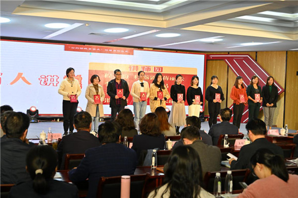 团区委领导向万人大讲堂志愿者讲师颁发证书。