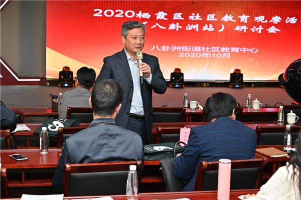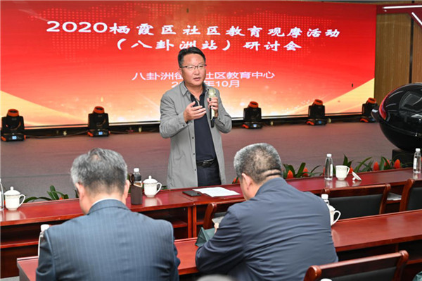 栖霞区教育局李斌副局长主持召开了本次观摩活动研讨会,职社科夏禄斌科长,各社区教育中心校长分别做了发言。