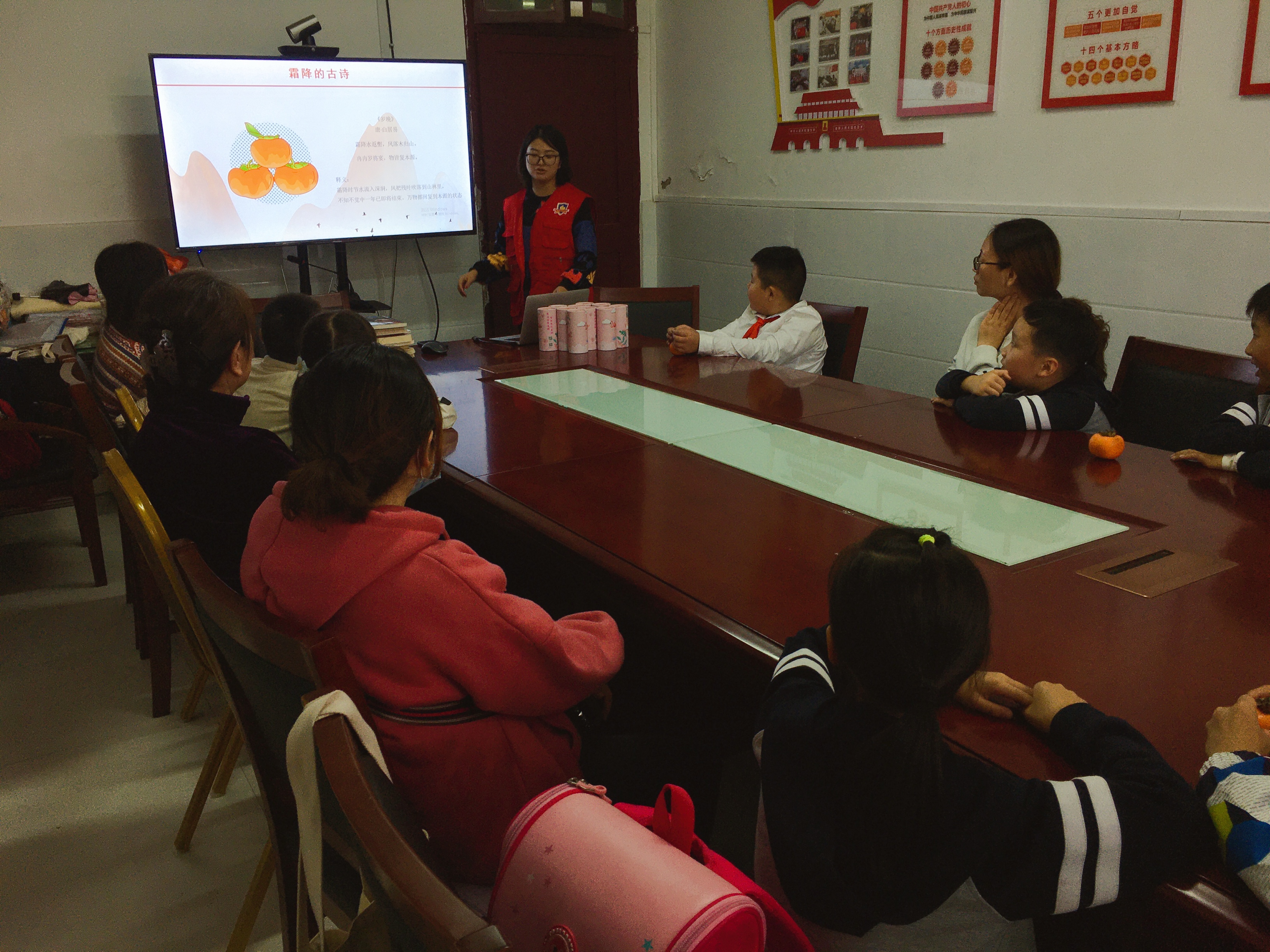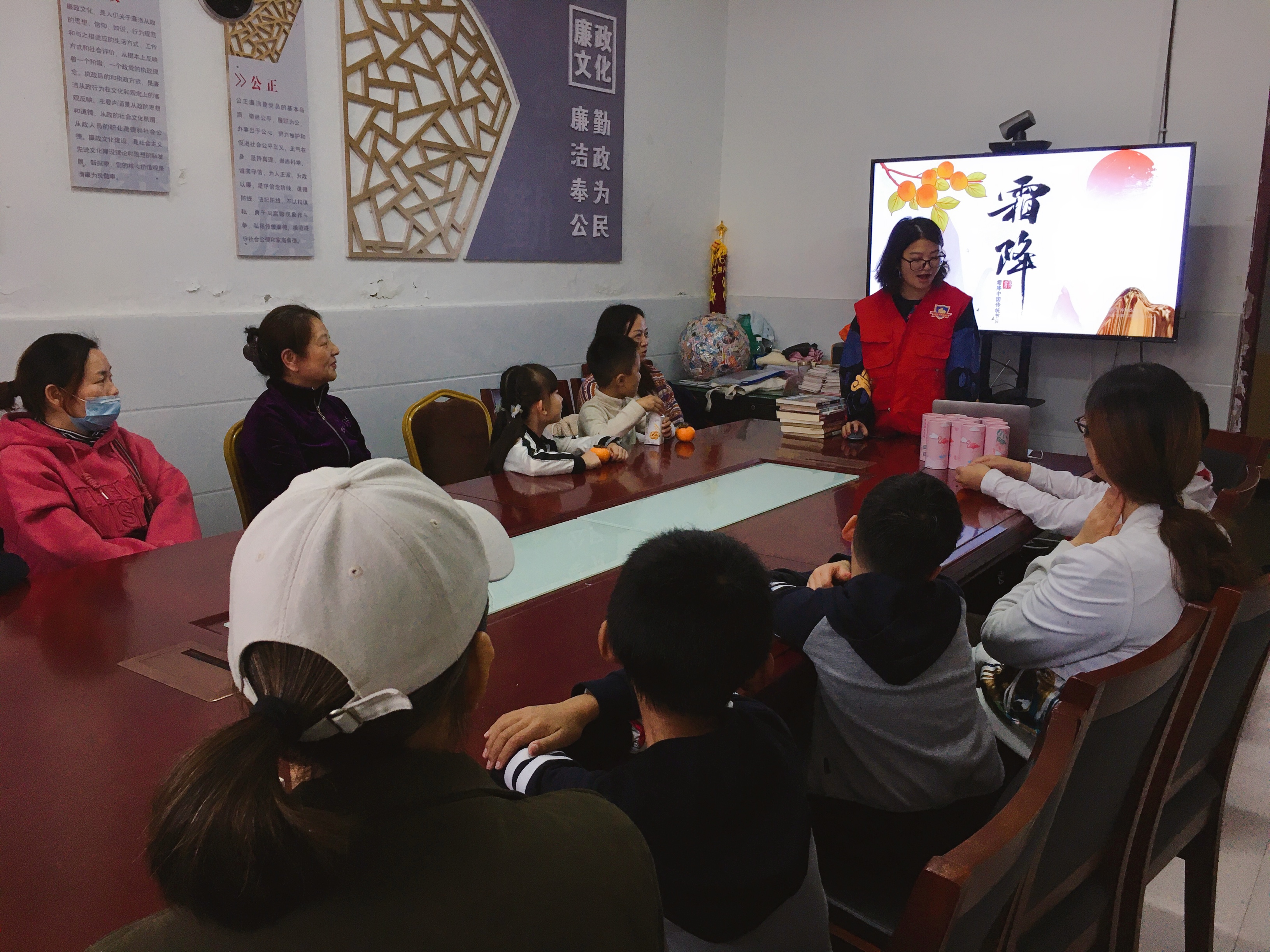 俗话说:“霜降吃灯柿,不会流鼻涕。”活动现场,社区居民学校的老师还为参加活动的学生、家长准备了柿子, 孩子们和家长一起分享,其乐融融。通过本次活动,不仅加深了社区孩子们对霜降节气的熟悉度,对传统民俗的认知度,也让孩子们更多地了解了农历24节气这些传统节气,传承中国传统习俗。