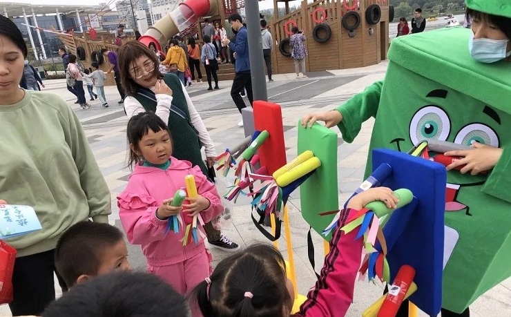 “吸引力top的巨型飞行棋”,作为活动中的“庞然大物”,飞行棋吸引了无数小朋友前来体验,在家长的陪伴和指导下,小朋友们对飞行棋上的问题都对答如流,很好的掌握了一些垃圾分类的技巧,孩子们不仅收获了小礼物,也收获了不同以往的新奇体验。
