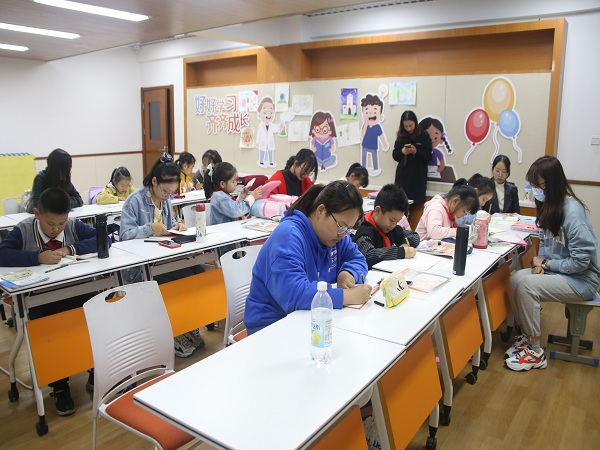 很多小学放学时间早,放学后去哪儿,是个普遍存在的问题。如何让孩子们在这段时间得到妥善照顾,为学生家长“分忧”?近日,齐民路社区联合南京师范大学文欣青年志愿者协会于每周周三、周五下午3:30—5:30开展公益免费“一对一”校外课堂,来到这里的学生都将在安全的环境下得到妥善的照料,而且,大学生志愿者们对孩子们在课程学习中遇到的问题与困难还会进行 “一对一”解答与教授,孩子们碰到不会做的题目,也能够及时询问边上的大学生志愿者,在他们的辅导下,一道道题目迎刃而解。