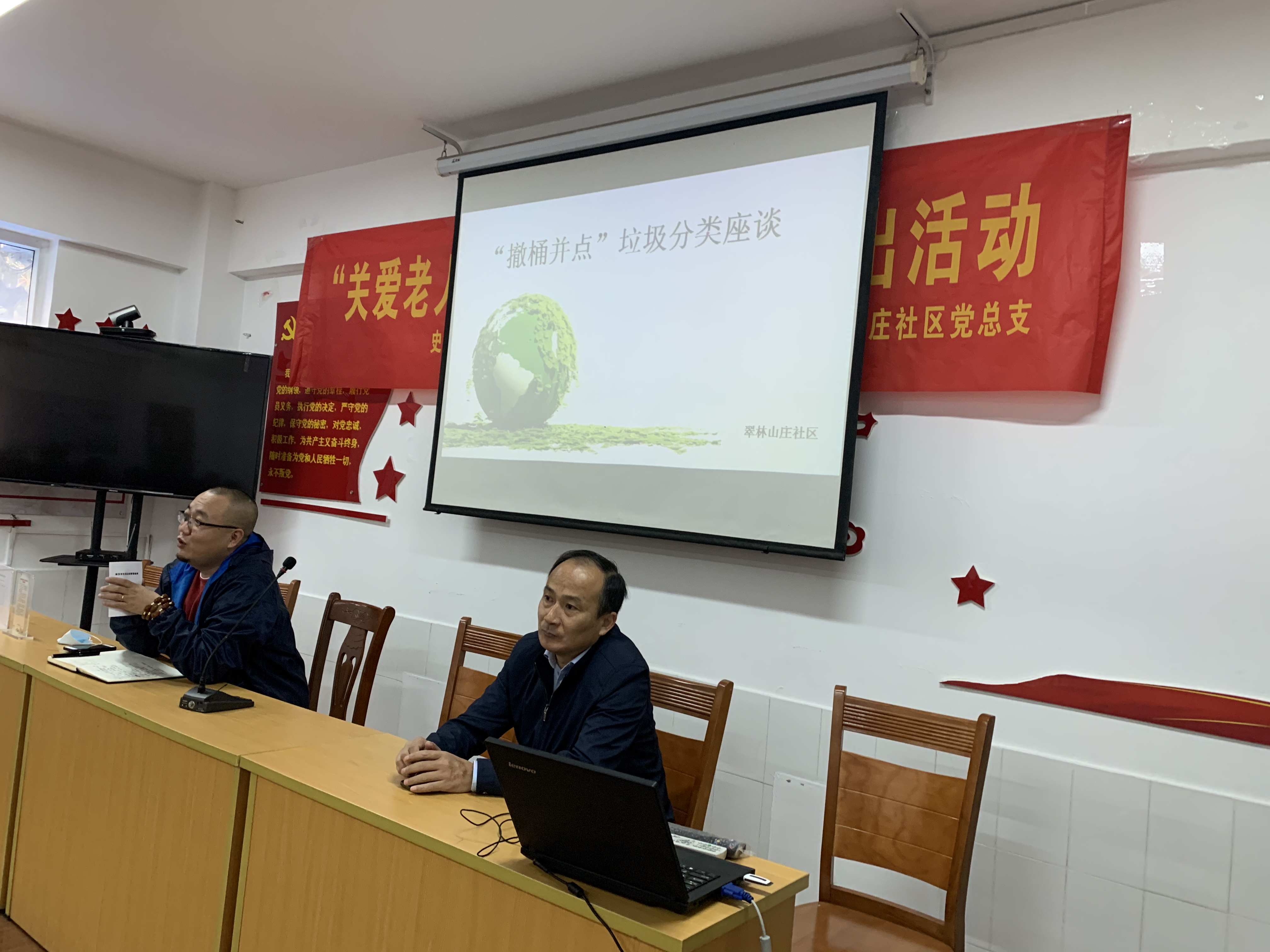 10月21日上午,翠林山庄社区邀请直达环保负责垃圾分类的陈总为小区居民举办了一场以垃圾分类为主题的环保知识讲座。
