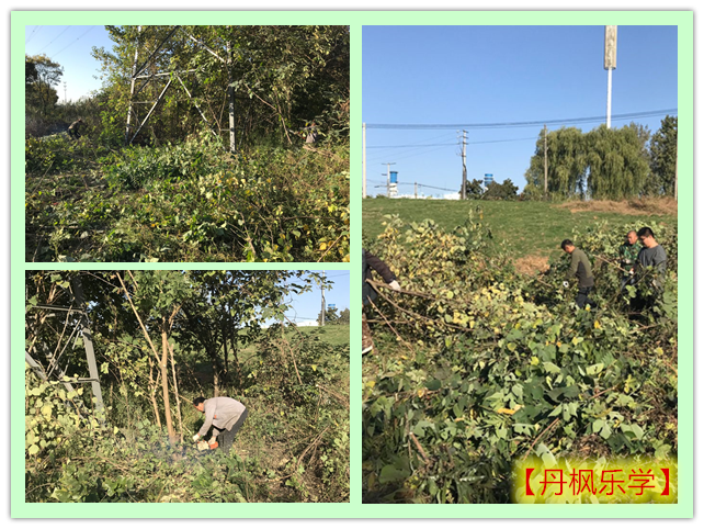 当天,社区工作人员带上镰刀、铁锹、油锯等工具来到位于七乡河与便民河交汇路段,先用油锯将河堤背水坡下的杂树切割分段,再由工作人员将分段后的树干、树枝装车拖运,最后用铁锹、镰刀将余下的杂草、树枝清理干净。经过一天的努力,河堤环境焕然一新。