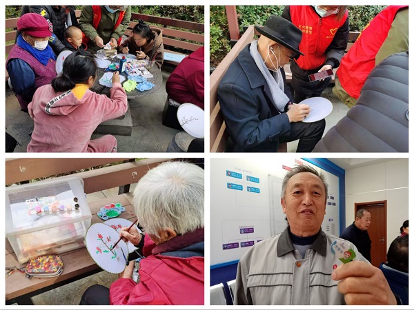2020年11月29日上午,南师大一行青年志愿者来到齐民路社区党建长廊,现场指导老年人们绘制团扇。志愿者向老人们讲解团扇的历史,展示团扇的优秀作品,让老人家了解中国团扇的文化历史,体会中华深远的文化。通过绘制团扇活动,为老人们带来快乐;志愿者们的耐心陪伴,在一定程度上也充实了老人们的生活。
