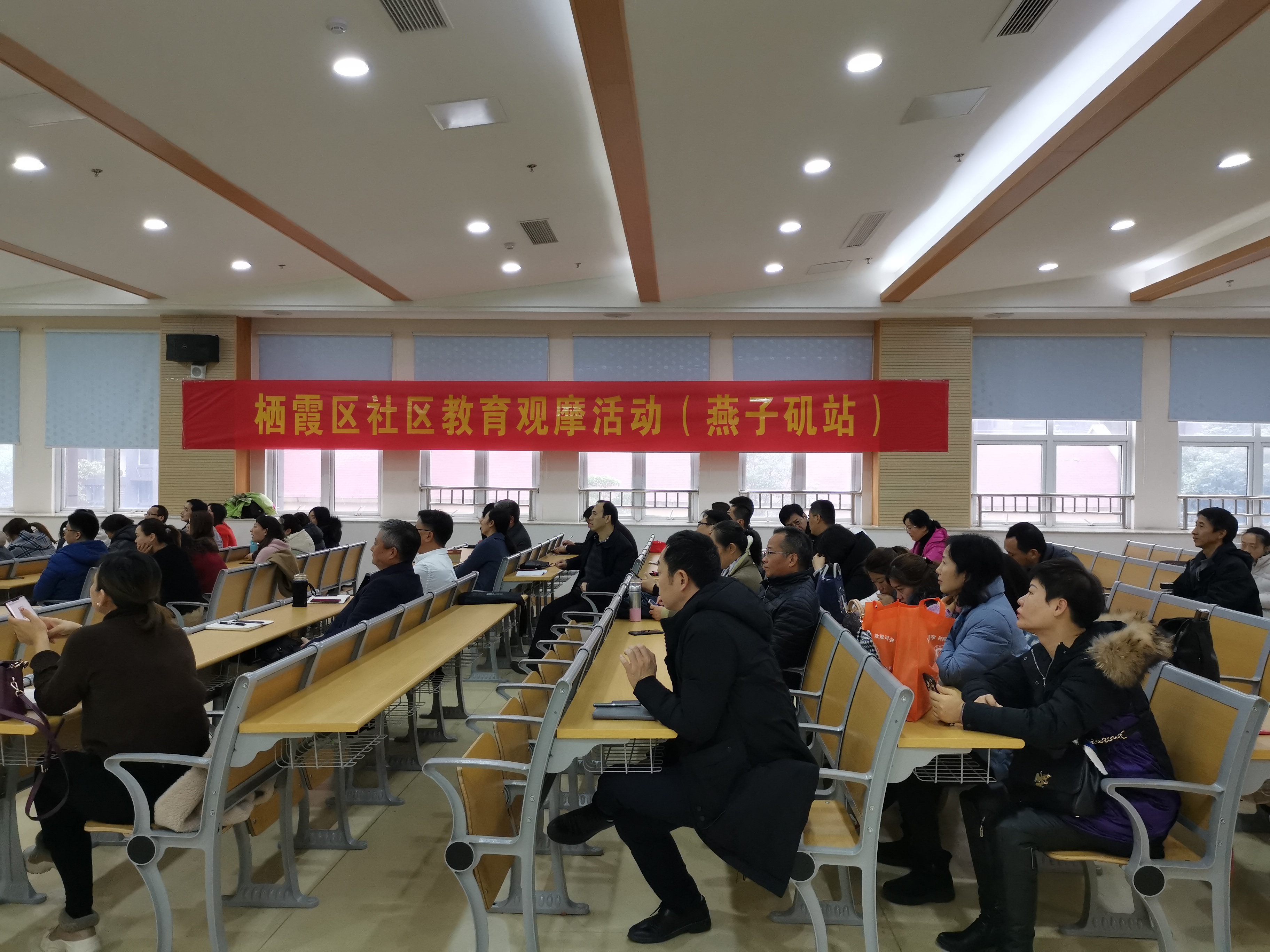 2020年12月7日,燕子矶街道社区教育观摩活动暨燕子矶街道全民终身学习周开幕正式启动。参加本次活动的有栖霞区教育局李斌副局长,职社科夏禄斌科长,区社区学院王广胜院长、杨洁主任及驻点教师,各街道社区教育中心校长和教师。