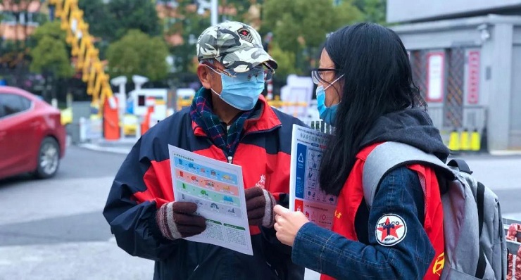在仙林新村(南区)的一处集中投放点边,志愿者朱雅洁拿着宣传册,一边讲解、一边耐心细致地向前来询问的居民们解答疑问。朱雅洁是南京师范大学大三学生,此次志愿活动,她和同学们“定岗”负责一处集中投放点的“桶边指导”,大家分工有序,有的负责为前来投放垃圾的居民提供指导,有的拿着宣传册跑遍小区的沿街商户进行宣传。在另一处集中收集点,是来自七色彩虹社会工作服务中心的志愿者,他们倡导居民参与垃圾分类刷卡积分,并现场为未开通刷卡服务的居民指导办理。