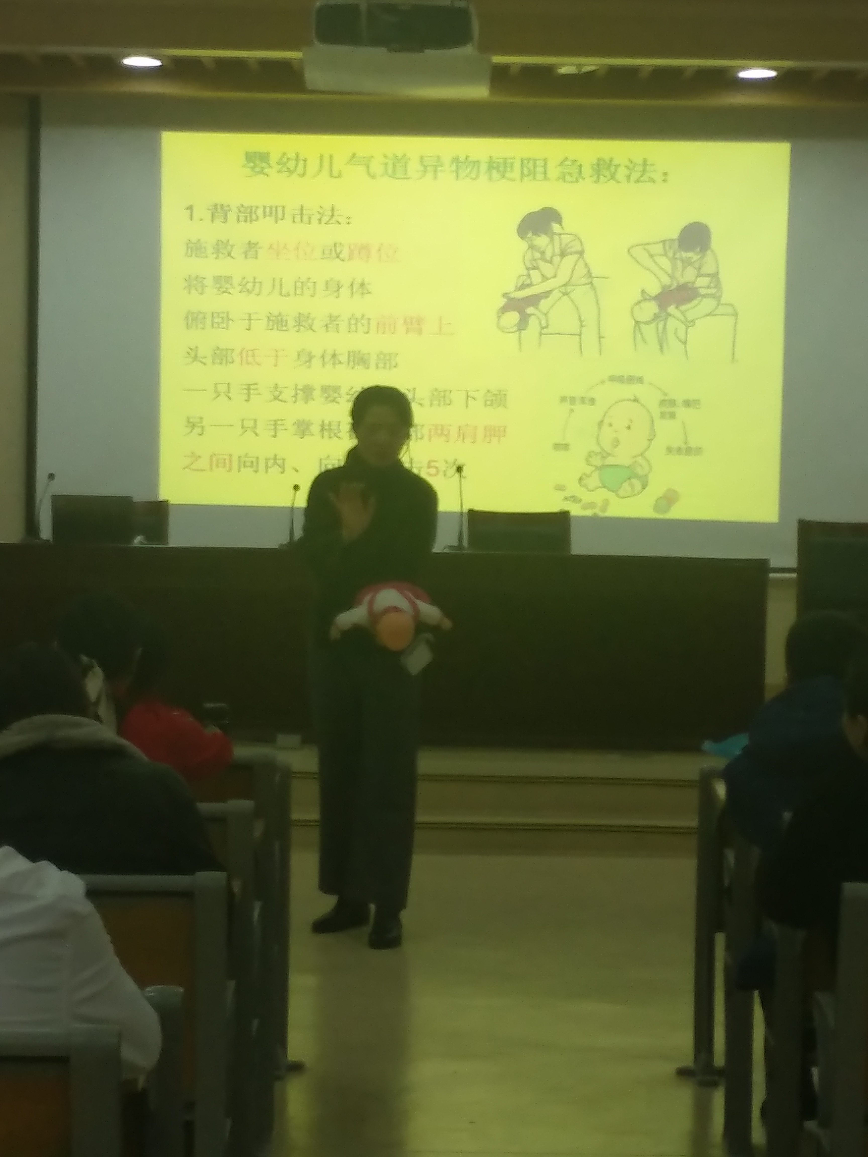 来自燕子矶中心小学的周洁老师给大家带来如何海姆立克急救知识的培训。培训即有理论讲解,又有现场演示,实用性强。