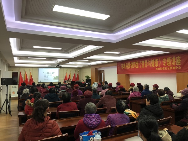 为倡导辖区内居民健康生活,进一步普及健康生活意识,营造全民参与健康行动的良好氛围,由西岗街道社区教育中心举办的《营养与健康》健康知识讲座活动于2020年12月10日上午在齐民路社区举行。此次活动邀请了南京市农科教讲师团成员、金陵科技学院副教授王耘博士进行讲授,旨在向广大社区居民宣传健康知识和健康生活理念,活动吸引了超过百余人参加。