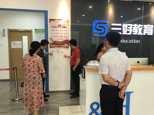8月10日下午,栖霞区教育局李斌副局长、夏禄斌主任、西岗街道社区教育中心罗琴校长及工作人员对辖区内三好、金知两家校外培训机构进行了督查。