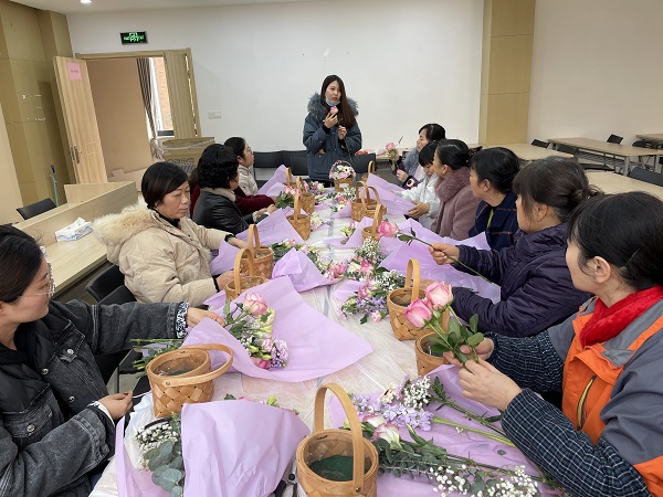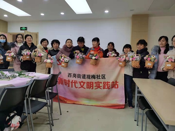 为丰富辖区女性精神文化生活,倡导绿色健康的生活方式,2020年12月30日下午,观梅社区新时代文明实践站联合花艺志愿者开展“花团锦簇,喜迎元旦”趣味插花活动。