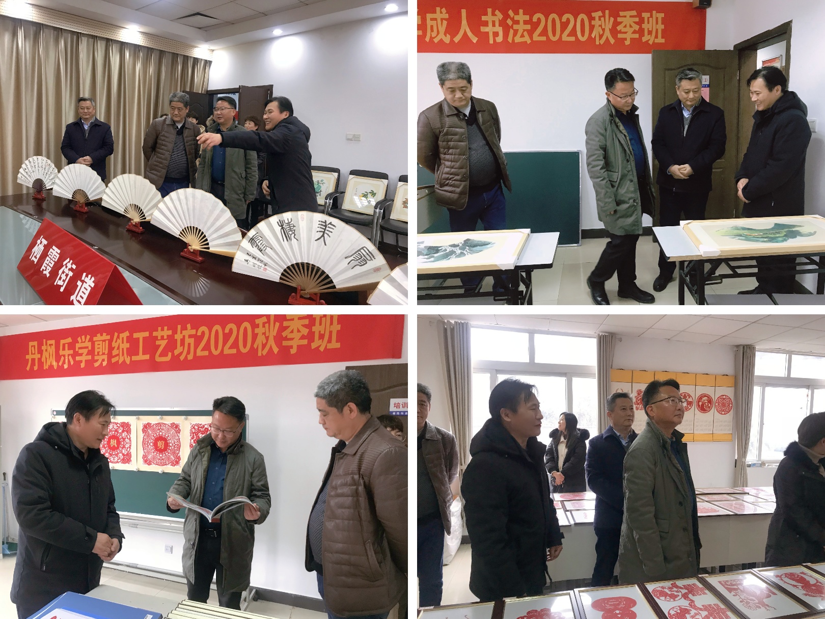 首先,李斌副局长以及吴明龙校长带领考核小组成员带队实地查看了教育中心的阵地建设和文化氛围的营造,展示了成人书画作品,参观了丹枫乐学剪纸工艺坊名师工作室等。