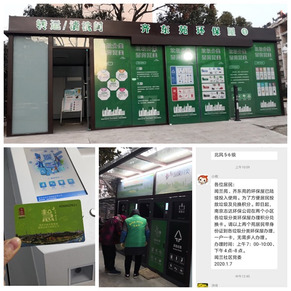 近日,随着临时投放点垃圾桶最终撤出小区,闻兰苑、齐东苑的环保屋也陆续投入使用,其中闻兰苑8处,齐东苑5处。为了提高居民垃圾分类的自觉性、积极性,闻兰社区联合南京志达环保公司开始办理垃圾分类礼品兑换卡,社区及时在掌上云微信群通过爱小栖发布积分卡办理通知,由南京志达环保公司在两个小区各垃圾分类环保屋为居民办理。