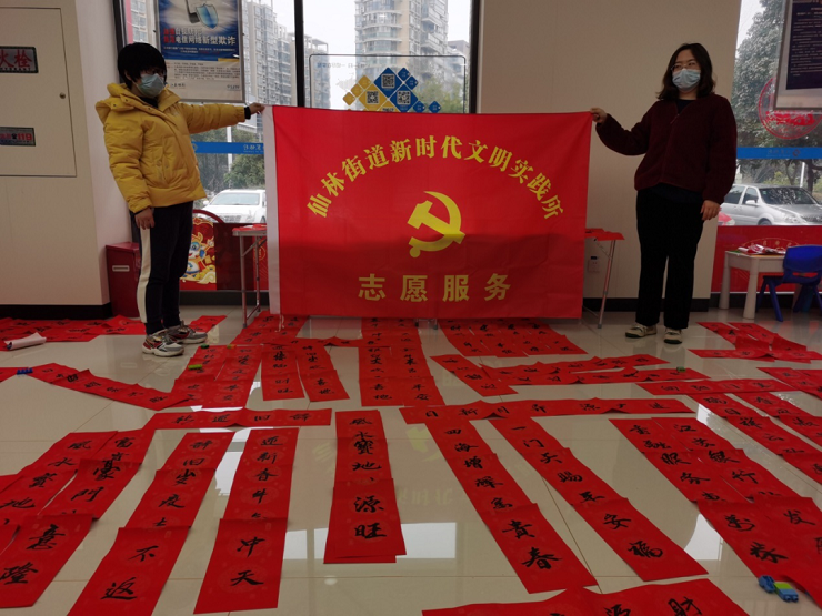 活动现场,书法家朱老师、杨老师、徐老师等,个个热情满怀,挥毫泼墨。一个个喜庆的“福”字跃然纸上,一副副饱含祝福的春联一挥而就。“龙腾至万里,凤舞驾九州”“春归柳叶新,寒冬桃花嫩”……红红的春联给仙林增添了浓浓的年味,送去的不仅是春联,更是一场文化大餐,在传播中华民族传统文化的同时,为基层群众送去精神食粮,鼓舞群众振奋精神、增强干劲。