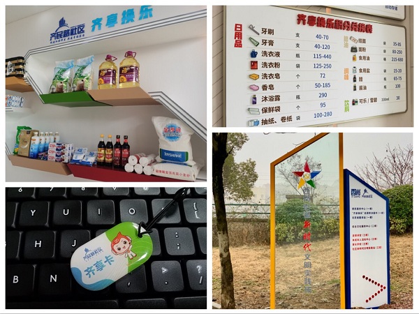 2020年5月,晶都茗苑作为第一批试点小区实施了“垃圾分类”,在推进过程中社区向居民发放了“齐享换乐”积分卡,除了参与志愿服务活动之外,通过投放厨余垃圾和可回收垃圾也可以获得环保积分,在积分超市可以兑换商品。