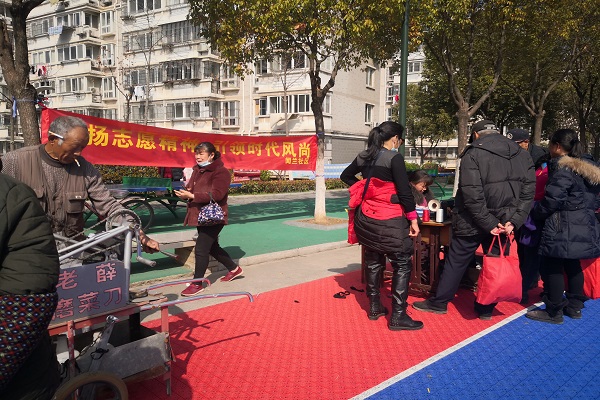 一大早,沐浴着春日暖阳,伴随着欢快的广场舞音乐,广场便民服务随之拉开帷幕,各支志愿服务队伍准备工作早已妥当,闻讯前来的居民们也已在各自“心仪”的摊位前排起了队伍。来自西岗卫生院的青年医生们,将为社区老人提供测血糖、量血压等服务,同时向老人宣传日常健康知识;社区便民维修志愿小分队则为居民提供义务理发、缝纫、修鞋、磨刀等服务。这些虽是小项目,却处处体现着社区关切居民日常生活的“小心思”。