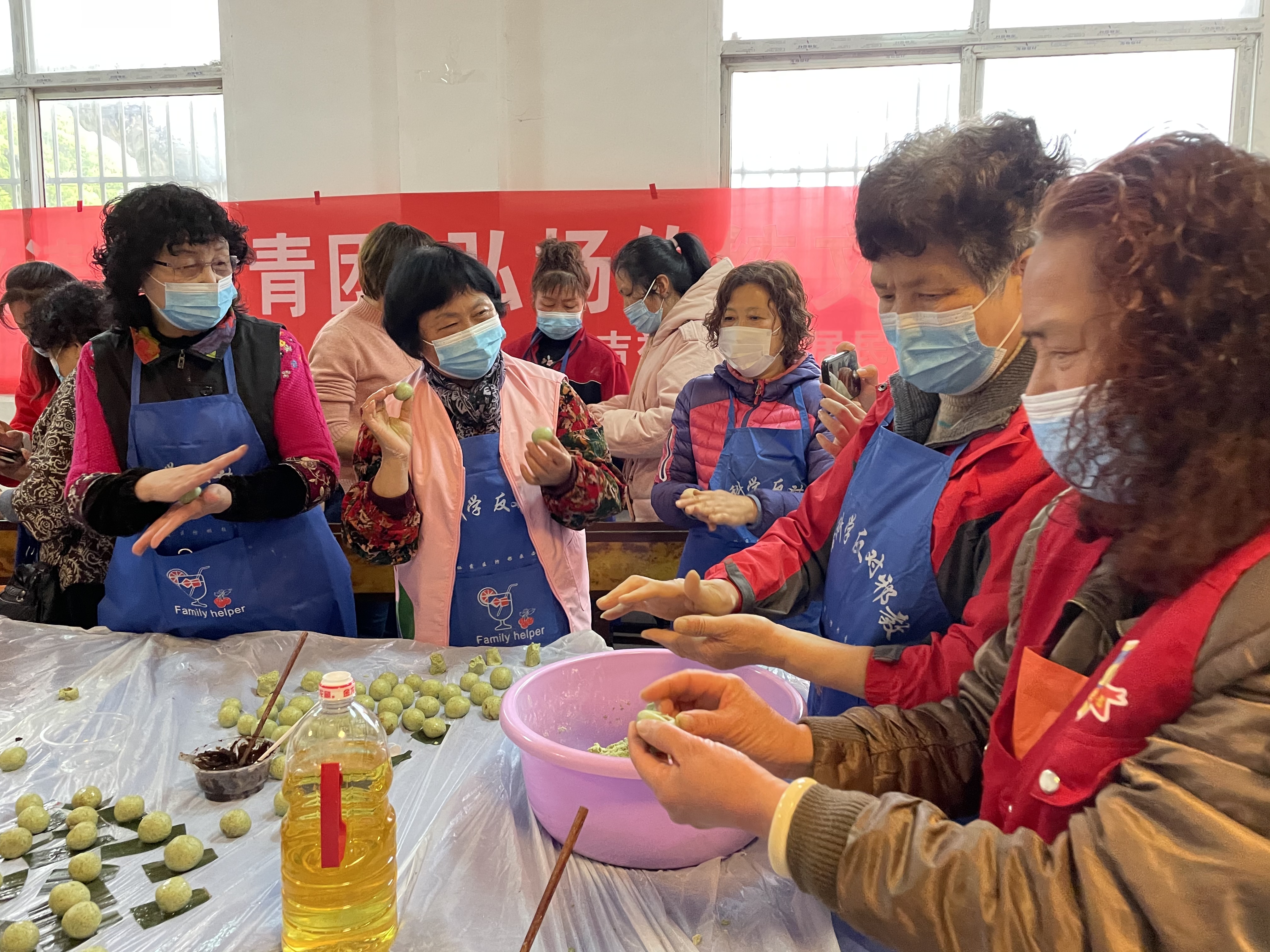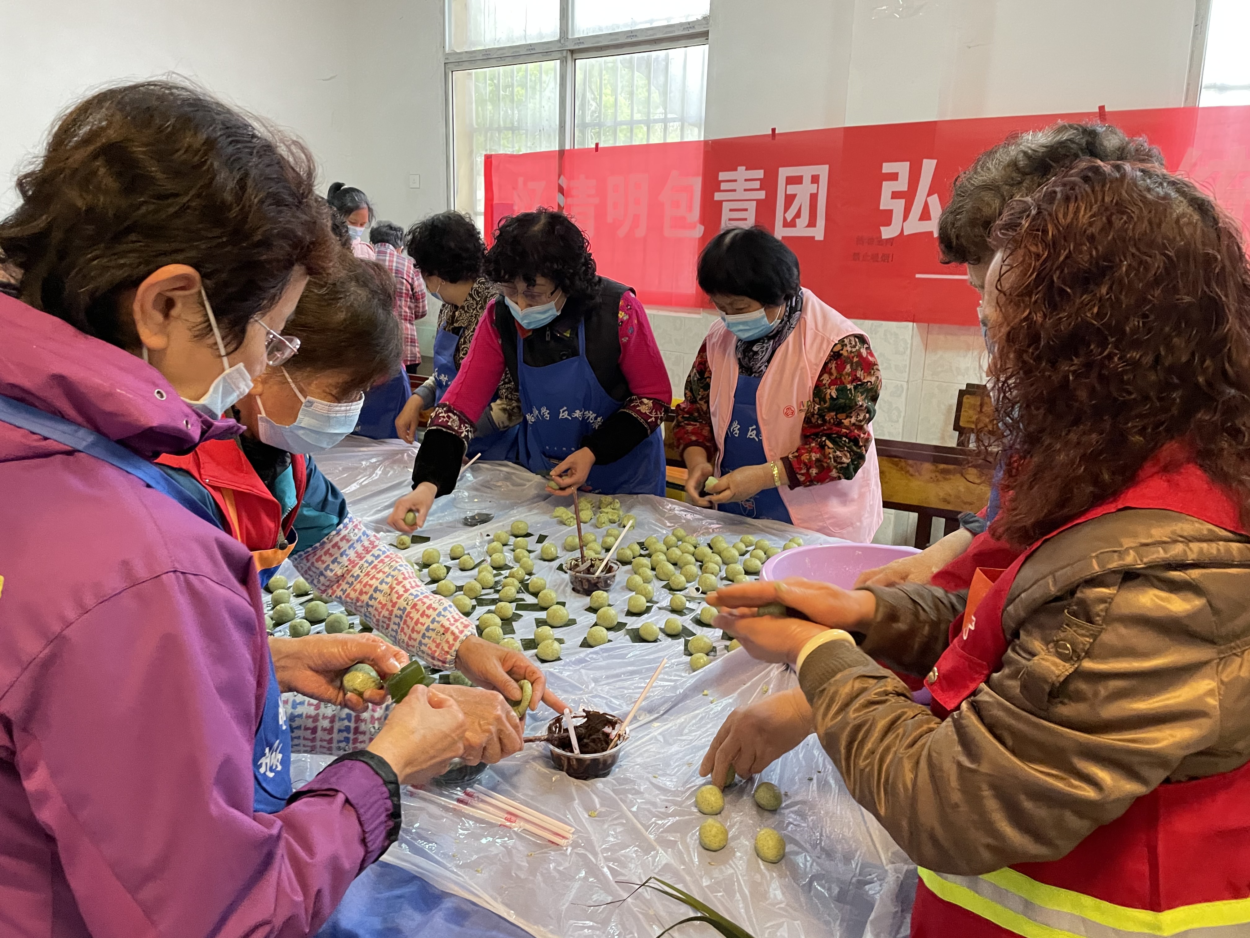为了让辖区居民感受传统文化,加强自身的动手能力, 4月1日下午,吉祥庵社区居民学校里一场“忆清明,包青团”活动热闹开场。