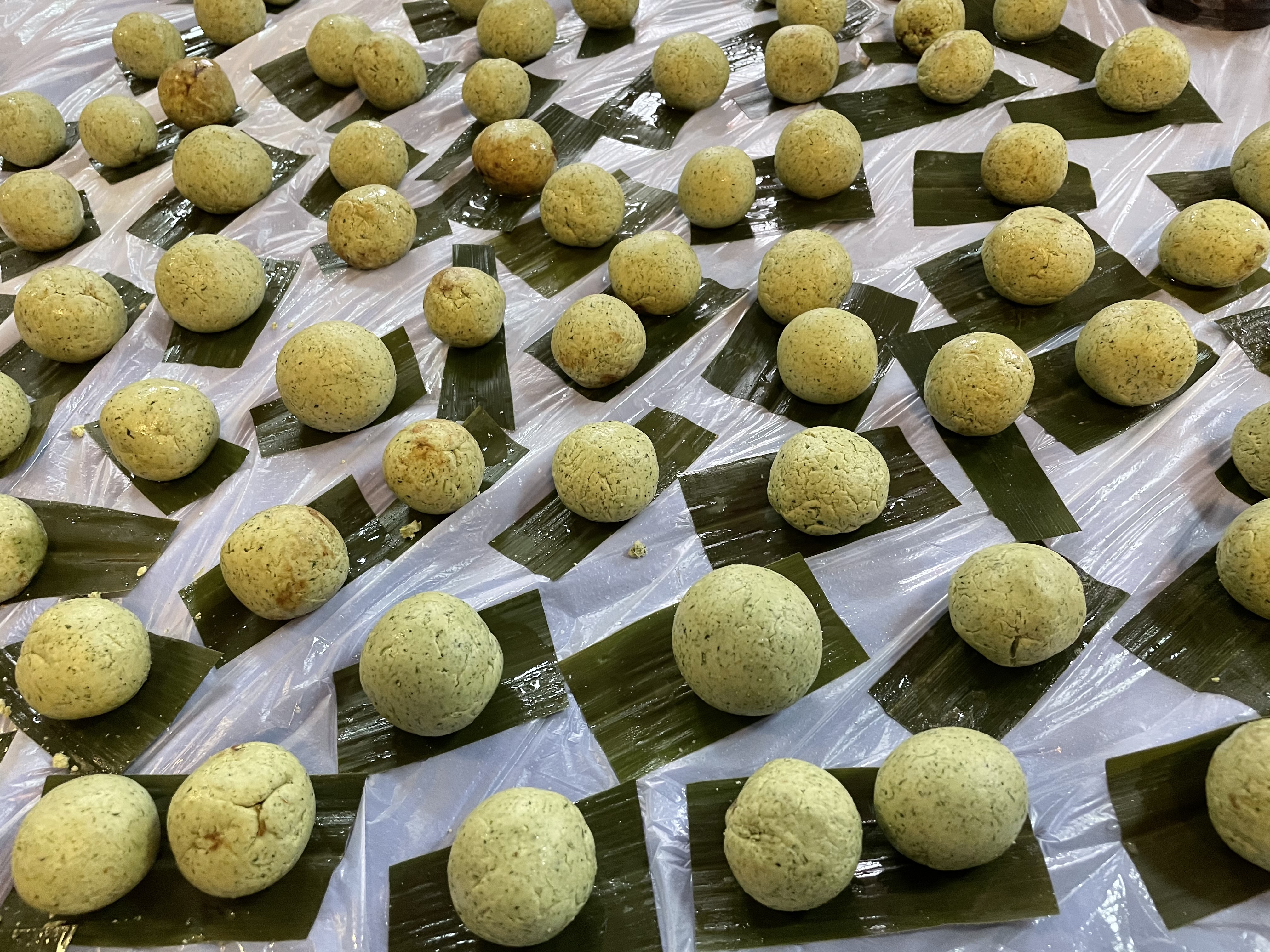 清明至,野艾香,清果嫩,正是做青团的最好时候。社区志愿者们首先给大家讲解了清明节的由来和习俗。面对各种新鲜的食材,大家分工明确,和粉、揉面、裹馅,帽子、口罩、手套全副武装准备就绪,大家跃跃欲试。志愿者们以艾叶作为原料,榨成青汁,糯米粉混上艾草汁,一个个绿色的面团整齐的堆放在餐盘中,大家揉捏糯米团,随后再包裹进豆沙馅料,有的捏成中规中矩的球形,有的捏成可爱的动物形状,大家干劲十足,现场其乐融融。青团上架蒸熟后,色如碧玉,糯韧绵软,清香扑鼻,大家品尝着亲手做的青团笑开了花。