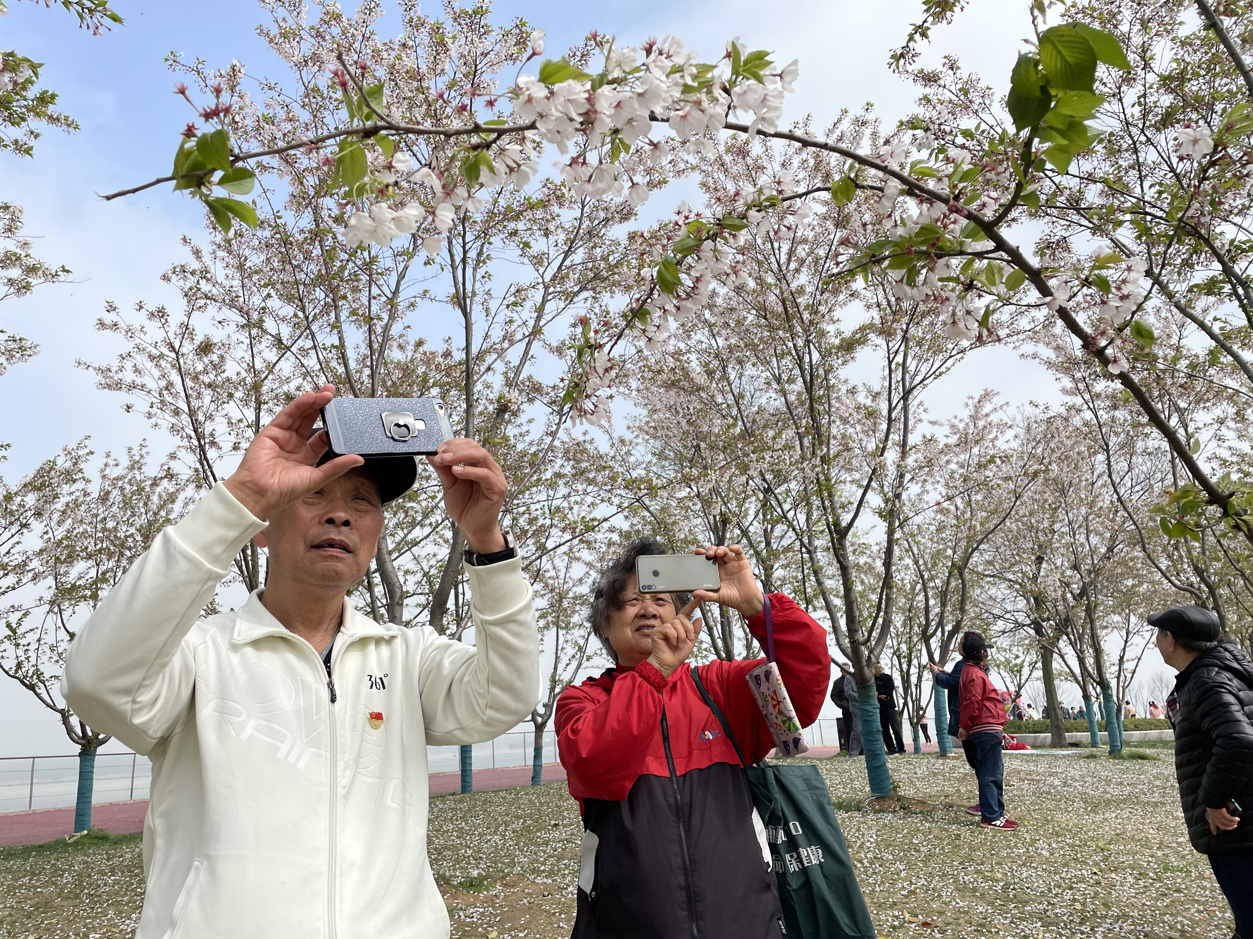 目前樱花已进入盛开期,手机培训班的学员在学习摄影时,化身“宣传员”,倡议游客:不要触碰和拉扯枝干,更不要攀枝折花;草坪采用的是果岭草,不耐踩踏,不要在此野营和搭帐篷;让大家共同维护一个整洁美观的赏樱区。