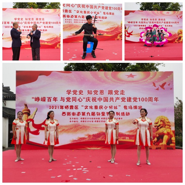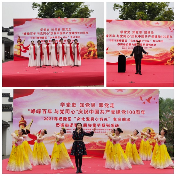 由栖霞区文旅局、西岗街道办事处主办,栖霞区文化馆、西岗街道文旅办承办的——“峥嵘百年 与党同心”庆祝中国共产党建党100周年 2021年栖霞区“文化惠民再出发”暨西岗街道第九届邻里节系列活动4月13日下午在桦墅村周冲开展。