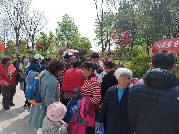 为了提升仙林湖辖区居民安全防范意识,4月15日上午,仙林湖社区联合街道综治办在仙林湖公园开展国家安全、反邪教、反电信诈骗等宣传活动。
